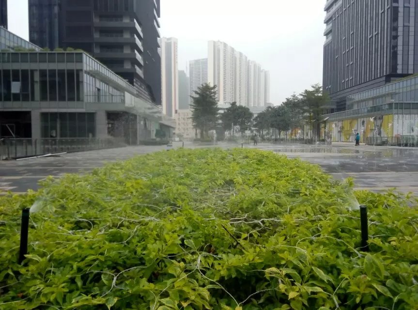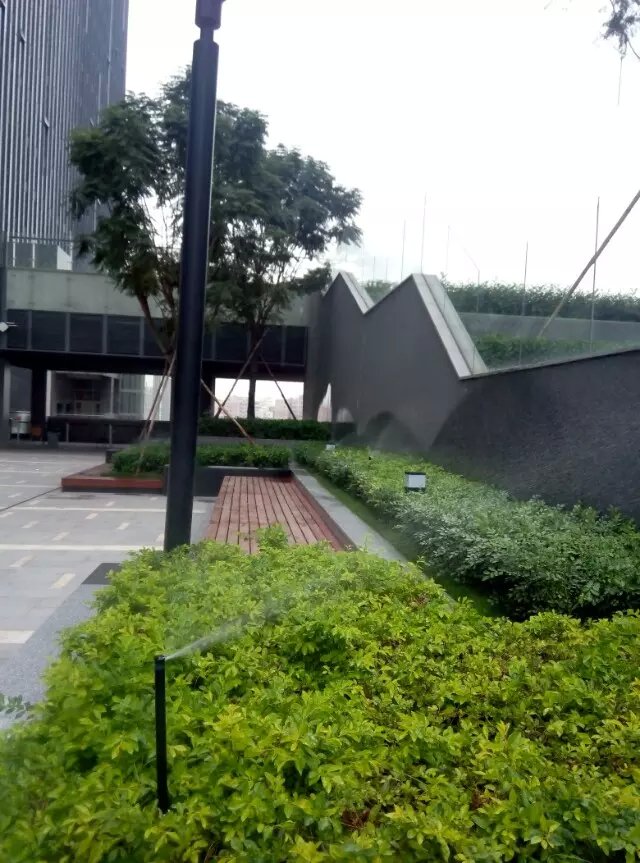 下圖為華為在天安云谷的辦公場所,其樓前草坪及樓層平臺綠化灌溉均采用了亨特灌溉系統。