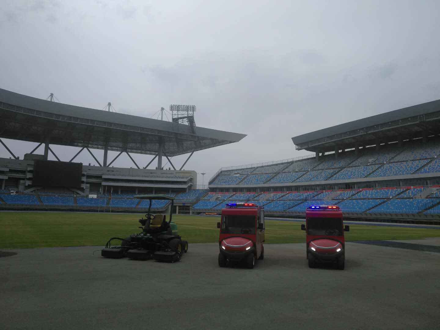 2018年7月在河北石家莊奧體中心交付2臺綠友研發(fā)生產(chǎn)的純電動消防車。