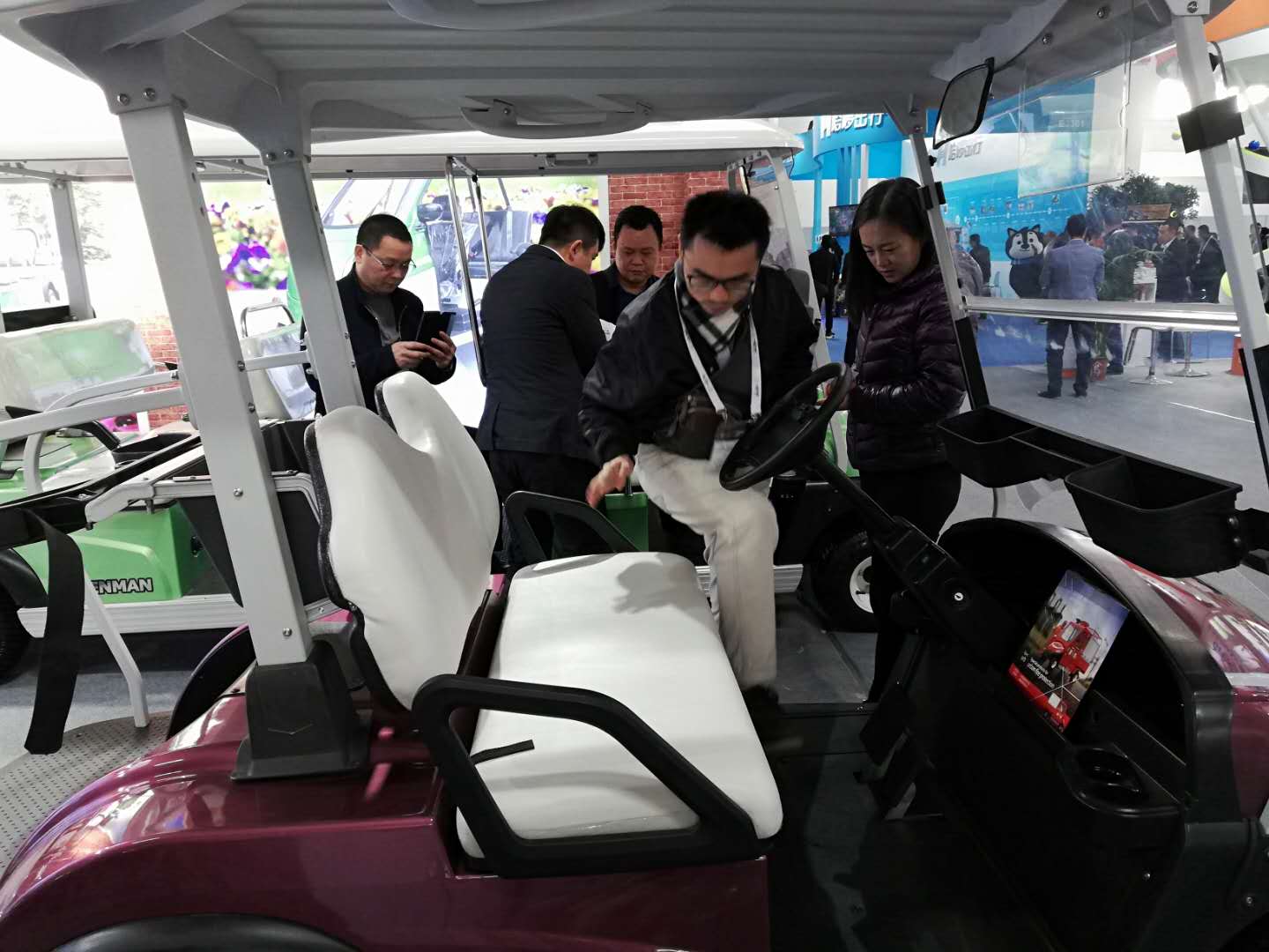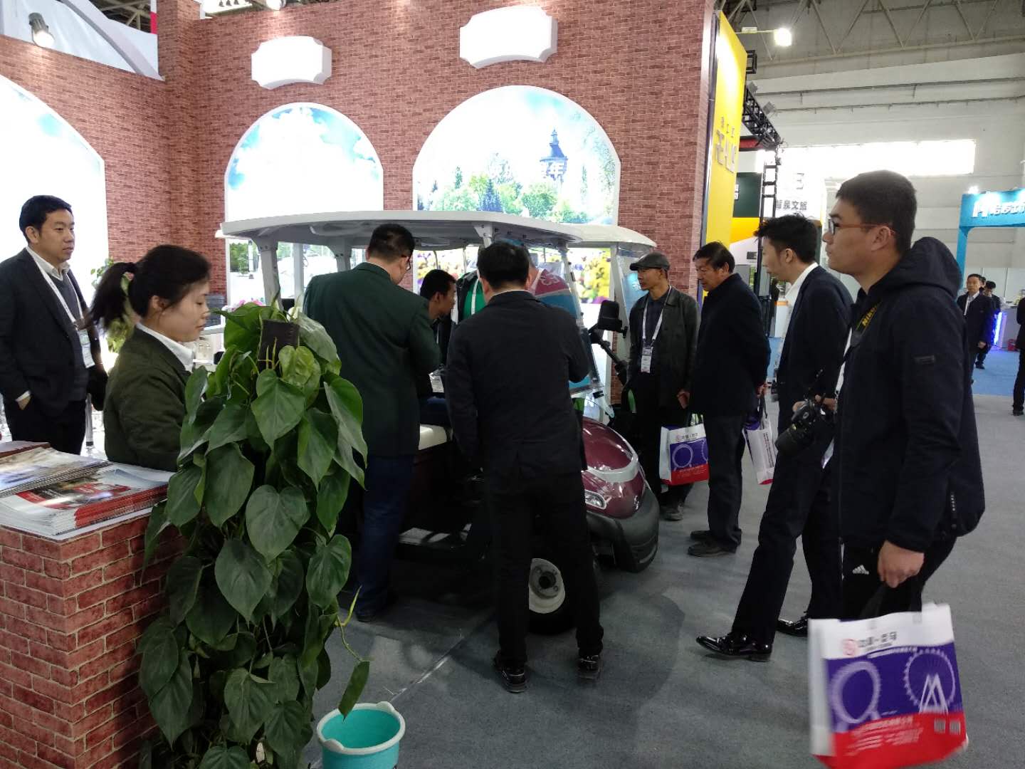 展會上,我公司電動車輛吸引了眾多參觀者的目光,來自景區,游樂場等各行各業有合作意向的專業客戶和我公司工作人員進行詳細地咨詢與洽談。
