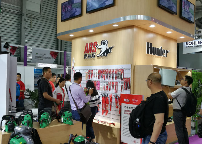 設備展示區更是吸引了眾多專業觀眾的眼光,綠友集團展示了自主研發、生產以及代理的剪草機、打藥機、灌溉系統、冷霧系統、電動車輛、粉碎機、無人機、園藝工具、植保用品等十多種產品。期間,綠友集團展位上一直人潮涌動,自產設備引來諸多關注。有問粉碎機的,有了解大型零轉彎剪草機的,有被冷霧系統所吸引的,有圍觀無人機的,更有很多觀眾現場購買愛麗斯園藝工具。綠友工作人員不知疲倦地解答著各種各樣的問題,也收獲了大量訂單。