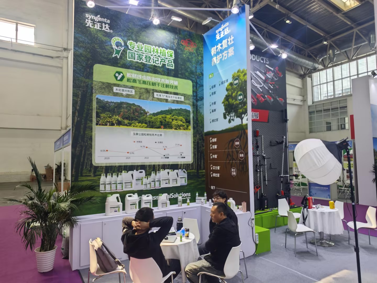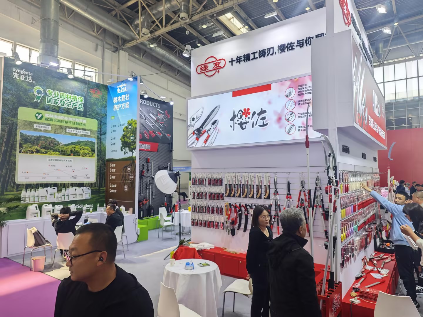 除工具類產品外,綠友集團還展出了智能割草機器人、園林植保藥劑、專業養護方案等多元產品。先正達合作展區的樹木復壯養護方案,以真實數據展現產品實效;智能割草機器人等創新產品,彰顯了綠友在園林智能化領域的前瞻布局。從手動工具到電動設備,從植保藥劑到智能裝備,綠友集團構建了覆蓋園林養護全場景的產品生態,滿足不同用戶的多元化需求。