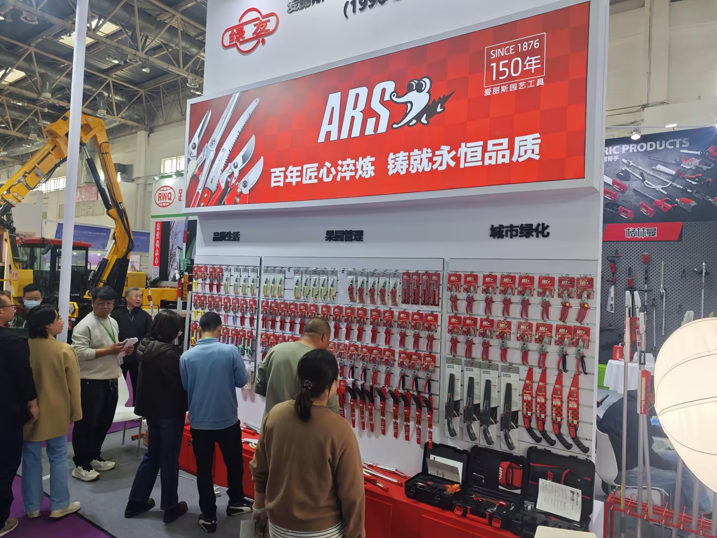 在E1館展區,綠友集團打造了一站式園林產業展示平臺。格林曼系列電動園林工具以“零排放、重量輕、更省力”為核心優勢,涵蓋割草機、綠籬機、吹風機等全品類產品,契合環保低碳的行業趨勢;櫻佐手工工具展區,從修枝剪到高枝鋸,以十年精工鑄就的鋒利刀身與耐用品質,吸引了大批專業觀眾駐足咨詢,盡顯匠心精神;愛可(ECHO)品牌帶來的專業級汽油動力園林設備,憑借多年技術積淀與全球統一品質標準,為林業、園林養護提供高效可靠的作業選擇;同期展出的ARS(愛麗斯)品牌產品同樣亮點紛呈,該品牌源自1876年的日本,是全球知名的園藝工具品牌,專注于園藝切割工具研發生產,融合尖端切割技術與高碳工具材質,涵蓋鋸、剪刀、電動剪刀等上百種產品,廣泛應用于花卉園藝、果業修剪、家庭工具、市政綠化等多個領域,以鋒利的剪切性能、舒適的使用手感和耐用品質,成為專業從業者的優選品牌,進一步豐富了綠友集團的全品類產品矩陣。
