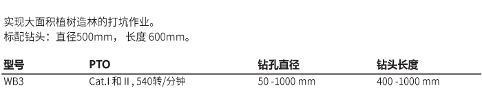 標配鉆頭:直徑500mm, 長度 600mm。