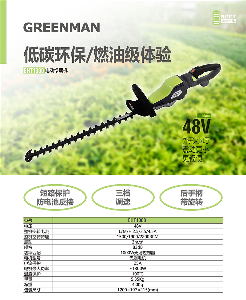 1300W大功率無刷電機(jī),修剪強(qiáng)勁